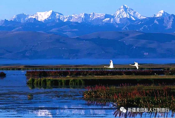 著名的“天鵝湖”中國唯一的天鵝自然保護區就在此地,天鵝起舞,雪峰花卉映襯,宛如童話世界。