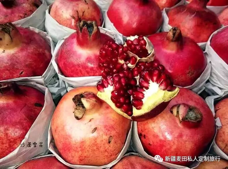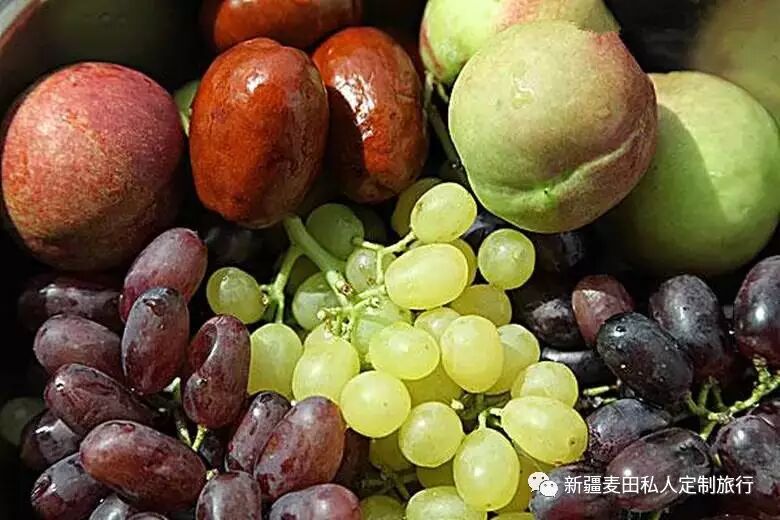 吐魯番的葡萄哈密的瓜,葉城的石榴人人誇,庫爾勒的香梨甲天下,伊犁蘋果頂呱呱,阿圖什的無花果名聲大,下野地的西瓜甜又沙,喀什櫻桃賽珍珠,伽師甜瓜甜掉牙,和田的薄皮核桃不用敲,庫車白杏味最佳,一年四季有瓜果,來到新疆不想家!