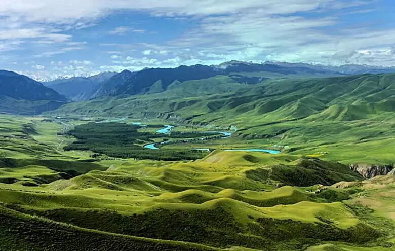 新疆、三山夾二盆、天山、崑崙山、阿爾泰山橫貫東西;古爾班通古特、塔克拉瑪幹兩大沙漠淨臥在三山之間。因此無論你在新疆何地、何時。都會欣賞到沙漠、草原、河流、山峰,總有美景一路相陪。