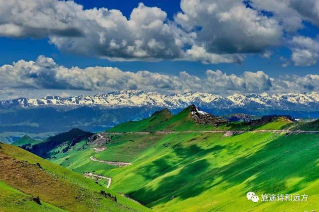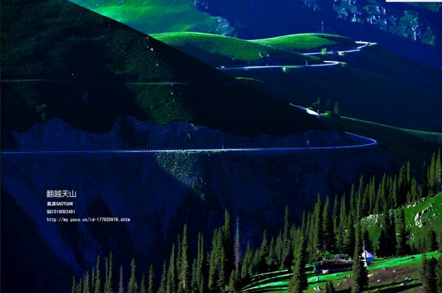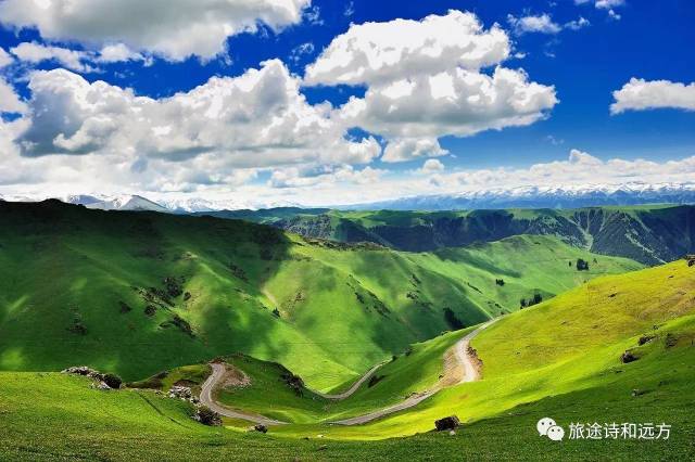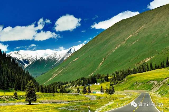 當車行至天山腳下,公路兩旁的樹木猶如儀仗隊在迎接著你,綠意沁心。