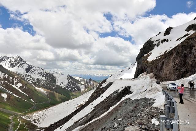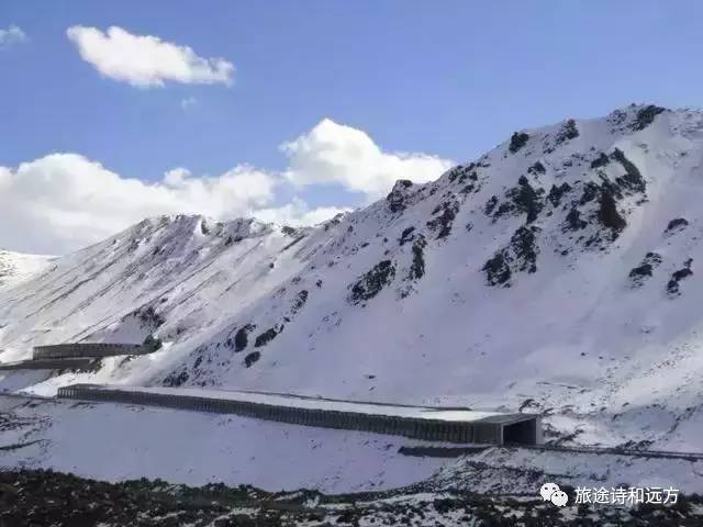 公路沿途穿過天山海拔3700米常年積雪的”鐵裡買提達坂“,穿越中國海拔最高的隧道——海拔3390米的哈希勒根達坂隧道,酷暑八月,這里居然是滿天飛雪哦!